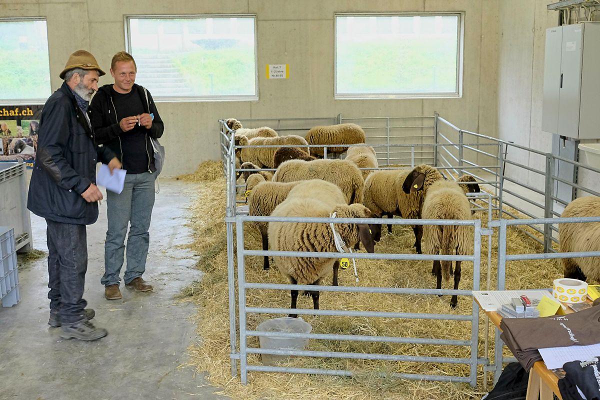 Es stehen 30 bis 40 Tiere zum Verkauf: Lämmer, Auen und Widder, wobei jedes Tier vor Ort kurz vorgestellt wird. Bei Bedarf werden die Tiere punktiert.